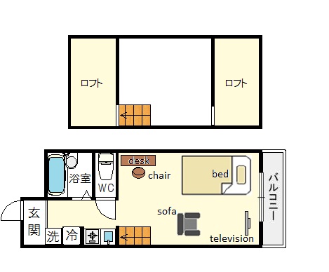 | 家具 | イス,カーテン付き,テーブル,デスク、ソファー |