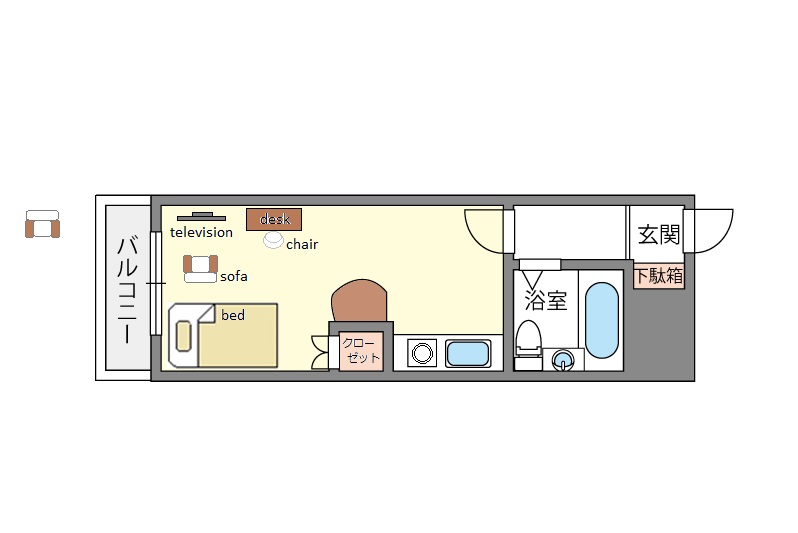| 家具 | イス,カーテン付き,テーブル,デスク、ソファー |