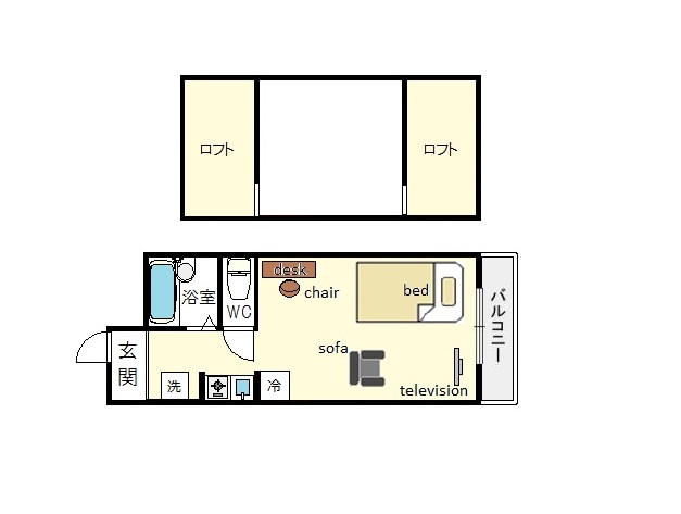 | 家具 | イス,カーテン付き,テーブル,デスク、ソファー |