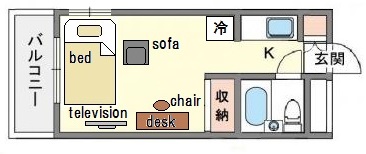 | 家具 | イス,カーテン付き,ソファー,テーブル,デスク |