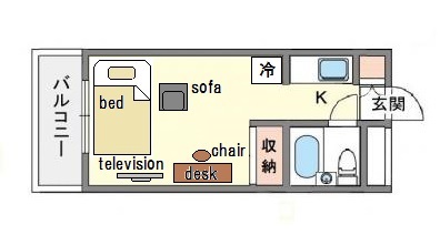 | 家具 | イス,カーテン付き,ソファー,テーブル,デスク |